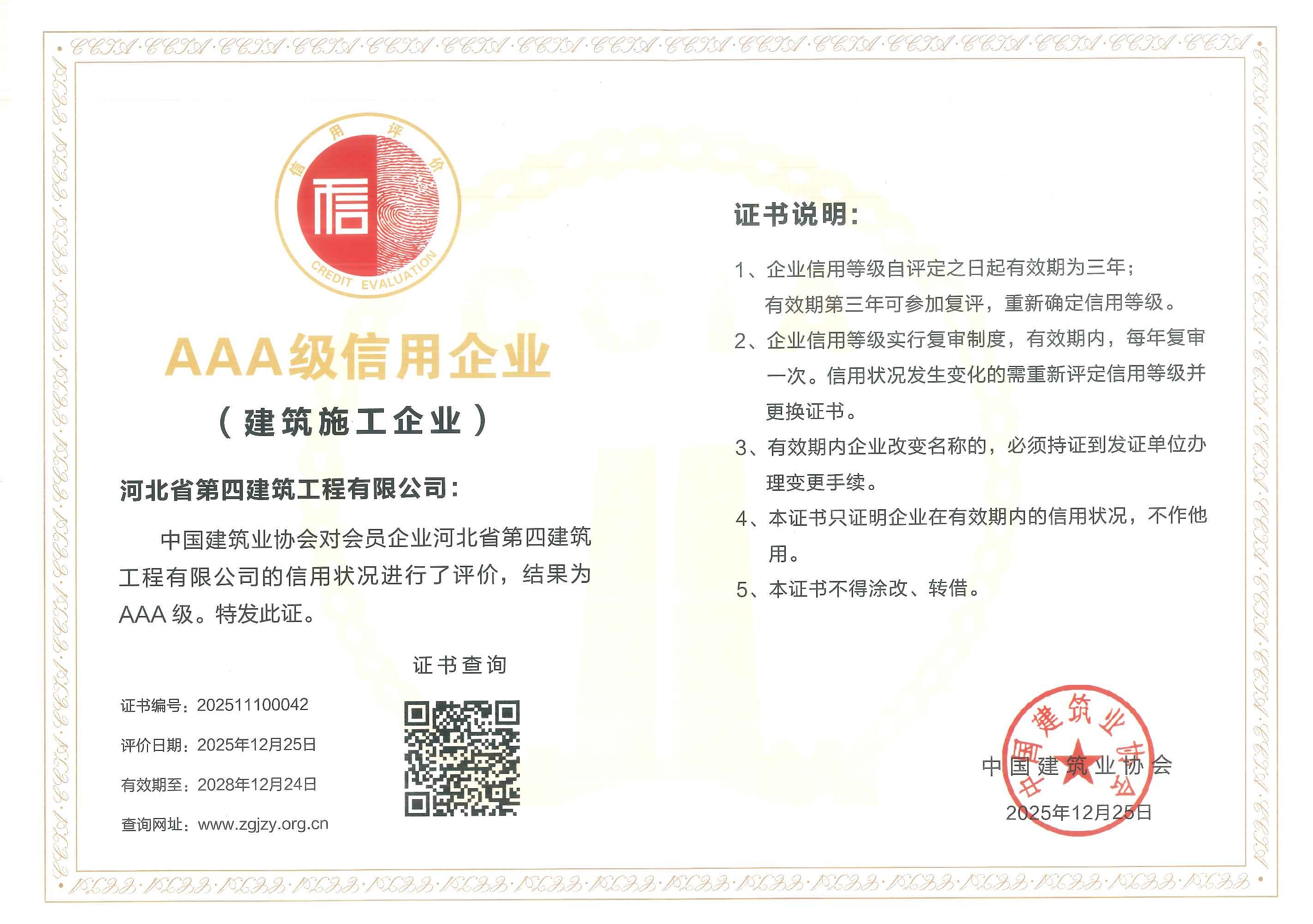 河北省建協(xié)AAA企業(yè)信用等級證書