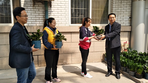 為了美化粉刷一新的辦公環(huán)境、凈化空氣,公司機關(guān)工會為每個辦公室購買發(fā)放綠植盆花,一盆盆綠意盎然、象征著生機、活力以及低碳環(huán)保的綠植為辦公室?guī)チ舜阂猓鎏砹松剩沧屄毠ぴ诿β档墓ぷ髦刑找鼻椴佟⒂鋹傂那椤?/font>4月8日,機關(guān)工會主席王彥森將生命力旺盛的70盆綠植送到了職工們的手中,職工們臉上洋溢著幸福的笑容。(工會)