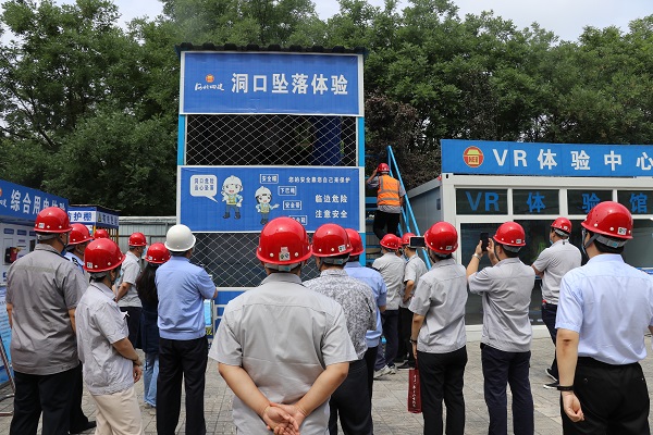 隨后,參加活動的黨員在項目黨支部書記的引領(lǐng)下來到河北四建煙廠項目現(xiàn)場,首先映入眼簾的是排列整齊的工程概況、安全分級管控等十二牌六圖。“紅、黃、蘭、綠四種顏色清楚的區(qū)分了現(xiàn)場安全風險點……。”大家一邊認真地聽著講解一邊說。在體驗區(qū),安全帽撞擊體驗、高空墜落體驗等通過講解員生動的解說和真人演示引起了大家濃厚興趣,“誰來體驗一下……。”“我來試試”煙廠支部的一個年輕人走上高空墜落的操作室,隨著項目工作人員的號令,墜落艙門迅速打開,年輕人瞬間落在下方的防護墊上,馬上翻滾起來。“感覺怎么樣?沒事吧。”大家趕緊上去詢問。“剛下墜的瞬間有些恐懼,我們平時還要增強安全意識,發(fā)生安全事故后果不堪設(shè)想……。”