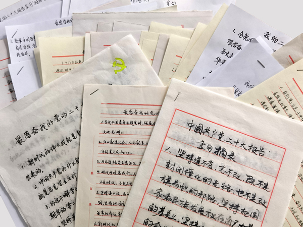 為進一步加深黨員職工對黨的二十大報告的學(xué)習(xí)理解,推進黨的二十大精神進頭腦、進思想,2022年11月26日至12月10日,公司黨委組織開展“最感奮我的黨的二十大報告金句”推薦活動。 通知一經(jīng)下發(fā),雖處疫情居家辦公期間,但大家的積極性絲毫不受影響。公司領(lǐng)導(dǎo)班子成員率先垂范,結(jié)合參加國務(wù)院國資委培訓(xùn)中心學(xué)習(xí)貫徹黨的二十大精神網(wǎng)絡(luò)培訓(xùn)班學(xué)習(xí)收獲,原原本本學(xué)習(xí)黨的二十大報告原文,共推薦金句112條。黨員職工認真學(xué)習(xí)黨的二十大報告,深刻理解報告中的新論斷、新要求、新部署,懷著崇敬的心情,一字一句工整地抄寫著金句,并表示,作為國企職工,要深入學(xué)習(xí)貫徹黨的二十大精神,立足本職、積極工作。十分公司王帥表示,通過摘抄黨的二十大報告金句,又是一次原原本本學(xué)習(xí),通過抄寫,對報告內(nèi)容又有新理解、新收獲,中國共產(chǎn)黨為人民謀幸福,從來都是動真情、出實招、辦實事。“作為一名黨員,要當(dāng)好干事先鋒員,以奮發(fā)有為的姿態(tài)抓工作落實。對照黨的二十大的法治要求,響應(yīng)黨的二十大的號召,我們要做社會主義法治的自覺遵守者、堅定捍衛(wèi)者。”六分公司劉生說。五分公司丁江霞更是在認真抄寫黨的二十大報告原文的同時,把自己朗誦的黨的二十大報告金句錄制下來,發(fā)送到自己的社交平臺,讓更多的人投身到黨的二十大報告學(xué)習(xí)中來。 本次活動,每名黨員職工分段分條推薦并把黨的二十大報告中讓自己最受感動、最受啟迪、最受鼓舞、最受激勵的原文,用筆抄寫到紙上,每人最少10條,不設(shè)上限。用腦思考、用手抄,手腦并用,學(xué)習(xí)更高效。經(jīng)統(tǒng)計,共計523名黨員職工參與,累計推薦金句5530條,最終公司黨委擇優(yōu)評選出19個作品給予表彰獎勵。(黨委宣傳部)