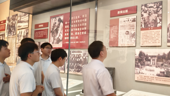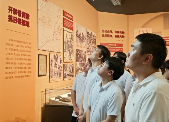 7月23日,分公司黨總支書記賈銀建帶領(lǐng)20余名職工步入河北省博物院“河北抗戰(zhàn)圖片檔案展”展廳,大家的目光隨著歷史脈絡(luò)逐步移動。在泛黃的電文手稿、磨損的軍用地圖、定格戰(zhàn)斗瞬間的黑白照片前,不時有人駐足凝視、低聲交流。當(dāng)看到100多人的八路軍小部隊午夜分工突襲,最終以零傷亡繳獲了敵人一個騎兵連的戰(zhàn)略物資時,安全科侯麗霞拿出手機(jī)記錄細(xì)節(jié):“先輩們在極其艱苦的條件下能夠想出破敵良策,我們?nèi)缃衩鎸ぷ麟y點更應(yīng)積極探索破解方法,干出新成效。”來到“根據(jù)地建設(shè)”展區(qū),財務(wù)科李召燕指著減租減息和大生產(chǎn)運(yùn)動的圖片感慨道:“這與我們當(dāng)前各科室聯(lián)動推進(jìn)項目工作的目的相同,要團(tuán)結(jié)一心才能推進(jìn)項目經(jīng)營管理取得更好成效。”參與活動的黨員干部紛紛表示,將把這份浸潤心靈的感悟轉(zhuǎn)化為“扎根崗位破難題,聚焦指標(biāo)抓落實”的實際行動,勇挑重?fù)?dān)。青年職工也鄭重立下“傳承偉大抗戰(zhàn)精神,立足崗位強(qiáng)本領(lǐng)”的承諾,把工作做深做細(xì)做扎實,用實干詮釋責(zé)任。