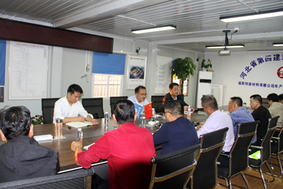 在會議室,董富強與項目部管理人員進行了工作交流,對各項工作給予肯定,強調(diào)項目部要提高站位,從嚴要求,以“四個樹”為工作著力點,在安全、質(zhì)量、進度、文明施工方面再發(fā)力,再提升,提高項目管理效果。一是安全樹紅線,要抓住公司第17次“百日安全生產(chǎn)無事故倒計時”活動契機,強化安全責任,樹牢“紅線意識”,從嚴落實安全制度,工作要做細,杜絕一切安全事故發(fā)生。高支模專項方案屬于超危大項目,一定要按照規(guī)范要求組織施工。二是質(zhì)量樹品牌。要弘揚“工匠精神”,做到標準化施工,確保混凝土密實度,結構幾何尺寸符合圖紙設計要求,切實做好質(zhì)量通病防范措施,做到精益求精,打造好四建品牌。三是進度樹形象,要增強履約意識,倒排工期,制定詳細的進度計劃。要發(fā)揮四建鐵軍精神,抓住目前黃金時間全力施工,打硬仗、打勝仗,確保“115”目標實現(xiàn),展現(xiàn)河北四建特級企業(yè)形象。四是文明施工樹標桿,現(xiàn)場各項文明施工要落實到位,做好揚塵防治工作,達到觀摩工地標準。