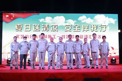 9月7日晚,由河北省直屬機(jī)關(guān)工會(huì)工作委員會(huì)主辦的“夏日送清涼,安全伴我行”慰問施工一線職工專場(chǎng)演出在八分公司武安項(xiàng)目部舉行,項(xiàng)目部全體職工與作業(yè)工人共計(jì)二百余人共同觀看了演出。