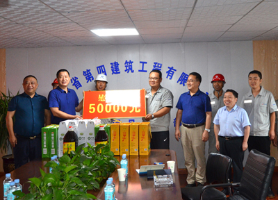8月5日,河北省省直工會(huì)副主任馬永紅、辦公室主任馬濤,冒雨到四分公司石鋼項(xiàng)目部進(jìn)行暑期慰問,為項(xiàng)目職工送上五谷雜糧、食用油等物品及慰問金。省四建公司黨委書記、董事長(zhǎng)董富強(qiáng),黨委副書記、工會(huì)主席李懷生一同參加。