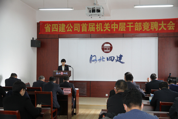 公開競聘選賢才,四建才俊展風采。2021年2月24日,省四建公司首屆機關中層正職崗位競聘會在四樓培訓中心舉行。30人(次)英才跨上講臺,暢談自己對11個中層正職崗位的履職目標和創(chuàng)新舉措,為公司各部門的管理獻計獻策。這是公司成立以來首次機制改革大規(guī)模人才選拔考評活動。公司黨委書記董事長董富強發(fā)表開賽致辭和總結講話。公司黨委副書記、紀委書記、工會主席李懷生主持競聘大會。