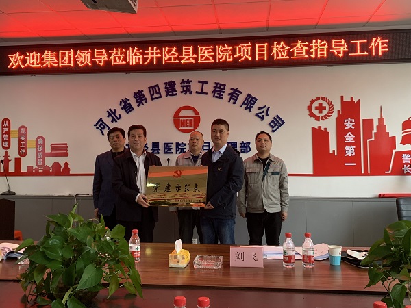 10月27日,集團(tuán)黨委副書記張慶虎、黨委組織部部長張秋英、黨委組織部劉飛等一行三人到省四建二分公司井陘縣醫(yī)院項目黨支部進(jìn)行黨建示范點驗收授牌。公司黨委副書記、紀(jì)委書記、工會主席李懷生,黨委組織部部長王彥森,分公司黨總支書記孫立鋒一同參加。