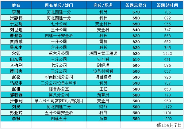 “等你來戰(zhàn)!公司‘安全培訓(xùn)教育月’微信答題活動開始啦!”隨著4月1日首次答題的推出,公司為期一個月的“強化安全教育,共建安康環(huán)境”主題安全生產(chǎn)知識微信答題活動拉開了帷幕。