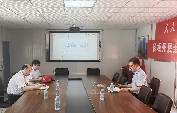 在項目會議室,董富強首先聽取了項目部關于進度、安全、質(zhì)量、文明施工等情況的匯報。他邊聽邊記,邊聽邊問,“施工進度怎么保證?”“創(chuàng)優(yōu)目標如何實現(xiàn)?”……他問得很細,記得認真,反復強調(diào)施工任務要再細化,務必卡緊節(jié)點,創(chuàng)優(yōu)工作要再深入,務必措施到位。在項目施工現(xiàn)場,董富強實地了解工程進展情況并進行指導。正值全國“安全生產(chǎn)月”活動開展之際,董富強要求項目部提高政治站位,壓緊壓實責任,落細落實管控措施,確保施工安全。