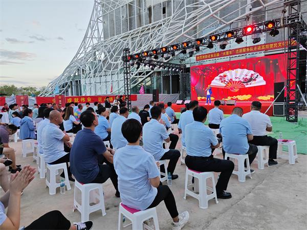 據(jù)悉,項目部高度重視此次志愿服務活動,統(tǒng)籌安排人員,積極與志愿服務隊對接,在施工現(xiàn)場規(guī)劃出一片場地,進行清理和平整,供舞臺搭建使用。在活動前一天,項目部在微信群內(nèi)發(fā)通知,將活動內(nèi)容逐項說明,確保每一名職工知曉。為保證職工能夠按時觀看節(jié)目,項目部食堂準備了便于食用的晚餐,并提前購買了礦泉水、水果等放在現(xiàn)場,方便大家隨時取用。
