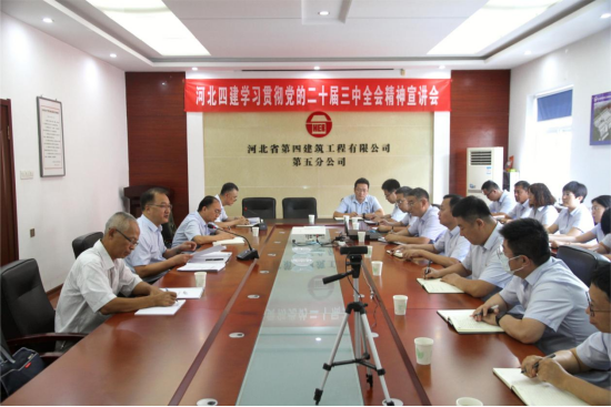 董富強強調(diào),要全力以赴抓好全會精神的學(xué)習(xí)貫徹工作,一要篤信提站位,充分認(rèn)識全會的重大意義,把思想和行動統(tǒng)一到黨中央決策部署上來,要堅持和落實“兩個毫不動搖”,以實際行動捍衛(wèi)“兩個確立”,堅決做到“兩個維護”。二要篤學(xué)悟精神,采取多種形式抓好全會精神的學(xué)習(xí),加強統(tǒng)籌協(xié)調(diào)和督促指導(dǎo),做到學(xué)深悟透、融會貫通。三要篤行齊奮進,以全會精神為指引,增強機遇意識,堅定信心,全力做好市場開發(fā)、風(fēng)險防控、項目管理等工作,推進公司發(fā)展邁出新步伐,為奮力譜寫中國式現(xiàn)代化建設(shè)河北篇章作出河北四建新貢獻。