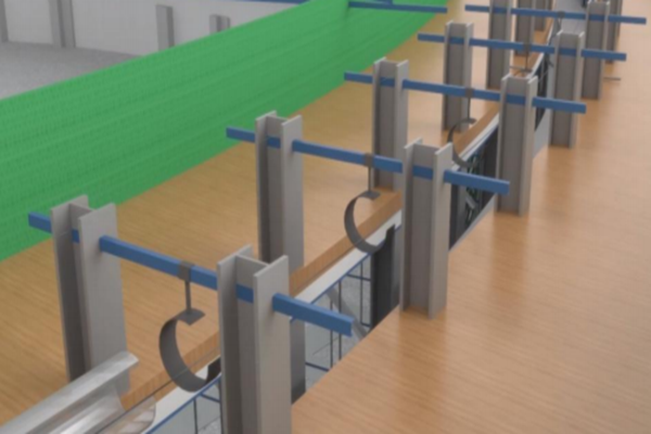 河北新彭楠焦化有限公司 251 萬噸/年焦化產(chǎn)能整合及減量項目部和安徽珍珠水泥集團(tuán)股份有限公司4000t/d新型干法水泥熟料生產(chǎn)線項目部,依托項目大直徑預(yù)應(yīng)力筒倉施工,成立了專門的課題實施小組,利用AotoCAD、Revit等軟件,進(jìn)行BIM建模分析,確定改進(jìn)方向,最終創(chuàng)新技術(shù)方法進(jìn)行施工。在大直徑預(yù)應(yīng)力筒倉鋼絞線施工時,鋼絞線柔軟且易穿出庫壁,項目部利用直徑10mm薄壁鋼管作為軌道提前進(jìn)行埋設(shè)固定,解決了鋼絞線在滑模施工時穿設(shè)出軌的問題,同時又減少了人工,加快了施工速度,在保證安全的前提下降低了施工成本。在此基礎(chǔ)上,項目部改進(jìn)現(xiàn)有穿束作業(yè)工藝,采用雙向機(jī)械化穿束技術(shù),結(jié)合行程觸碰限位器精準(zhǔn)控制穿束長度,大幅縮減了穿束時間,簡化了流程,降低了人力投入,減小了滑模平臺的承載力,提高了安全性。