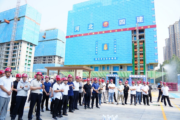 仲夏時(shí)節(jié),萬(wàn)物并秀。6月12日上午,二分公司西三教城中村改造回遷項(xiàng)目部,迎來(lái)了由河北建工集團(tuán)總工程師李占武帶隊(duì),各分公司生產(chǎn)經(jīng)理、安全科長(zhǎng)、項(xiàng)目經(jīng)理等組成的百人觀摩團(tuán)。本次觀摩全面展現(xiàn)了項(xiàng)目部在智慧賦能安全生產(chǎn)領(lǐng)域的深耕成果,一系列安全文明施工標(biāo)準(zhǔn)化做法和智能化設(shè)備的實(shí)際應(yīng)用成效,贏得了觀摩人員一致好評(píng)。