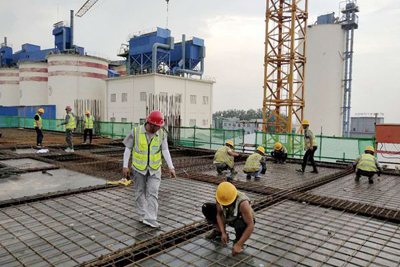 同心協(xié)力完成節(jié)點任務(wù)。水泥配料站、水泥粉磨是業(yè)主目前關(guān)注重點,要求8月3日前筒倉滑模到14.4米庫底板、水泥粉磨11.5米平面混凝土澆筑完,為安裝輥壓機、減速機等設(shè)備創(chuàng)造條件。時間緊任務(wù)急,持續(xù)的降雨反而更加激發(fā)了項目部的斗志,水泥配料站筒倉施工采用滑模工藝,滑模平臺上鋼筋綁扎、預(yù)留預(yù)埋安裝、混凝土澆筑、庫壁壓面等各道工序相互配合,工種銜接默契。雖然雨水經(jīng)常光顧,但是大家沒有絲毫懈怠,熱火朝天的干勁兒始終未減。水泥粉磨車間樓層高、場地狹窄給施工造成困難,項目部采用白天作業(yè)面施工,晚上班組倒運材料等方法,保證施工進(jìn)度。截至7月30日上午,水泥配料站14米庫底板、水泥磨11.5米平面、水泥及礦粉儲存基礎(chǔ)筏板均已澆筑完混凝土,為項目下一步施工創(chuàng)造了積極有利條件。(三分公司)