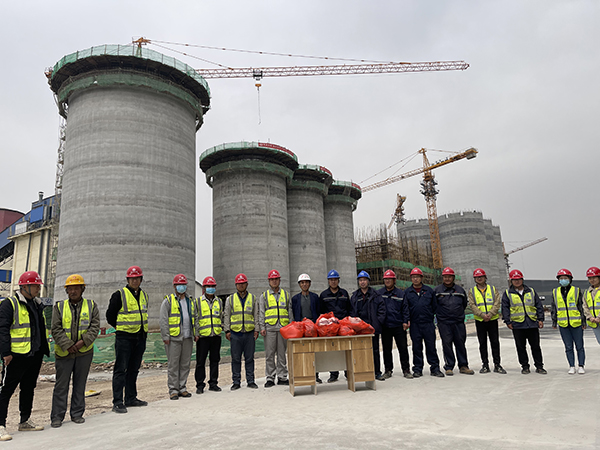 4月29日上午,業(yè)主安丘山水水泥有限公司領(lǐng)導(dǎo)帶著三百余斤豬肉等慰問品,專程來到三分公司山東安丘山水項(xiàng)目慰問,感謝項(xiàng)目部克服困難提前4天完成水泥儲(chǔ)存庫、水泥配料站滑模施工。