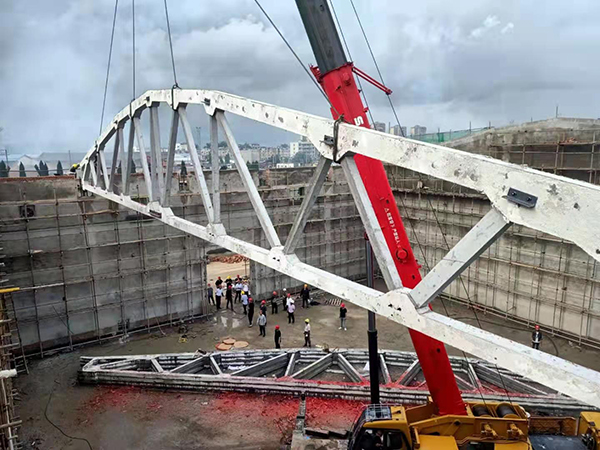 5#平房倉的倉頂由16榀預(yù)應(yīng)力屋架梁和400塊屋面板構(gòu)成,每榀預(yù)應(yīng)力屋架梁重14.24噸,長(zhǎng)度達(dá)30米,平房倉的工作重點(diǎn)是預(yù)應(yīng)力屋架梁的制作及吊裝,工作難度大、技術(shù)含量高,項(xiàng)目部緊抓屋架梁預(yù)制這道關(guān)鍵工序,提前謀劃,做好準(zhǔn)備。