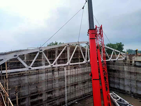 5月23日下午,二分公司安徽阜南糧食倉儲(chǔ)項(xiàng)目5#平房倉最后一塊屋面板順利吊裝就位,至此,項(xiàng)目首座平房倉提前3天主體完工,達(dá)到儲(chǔ)糧條件。