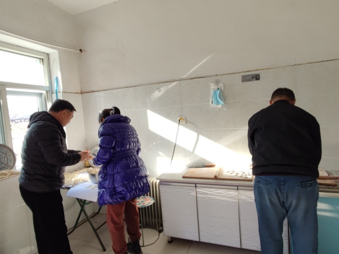 12月20日下午,租賃分公司經(jīng)理王建忠和副經(jīng)理葛利,計劃冬至包餃子為職工午餐增添花樣,同時安排好職工包餃子的準(zhǔn)備工作。21日早上,食堂工作人員提前活好面、剁好白菜……為包餃子做好準(zhǔn)備。