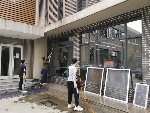 本次活動(dòng)主要針對(duì)設(shè)計(jì)院的公共衛(wèi)生區(qū)域。先是擦玻璃,職工孟榮榮說(shuō):“用報(bào)紙擦吧,以前都用報(bào)紙擦,擦得很干凈。”“那都是老黃歷了,現(xiàn)在都用擦玻璃神器啦,我早準(zhǔn)備好了。”趙蓓說(shuō)。只見(jiàn)趙蓓拿出自帶了“刮水”功能的擦玻璃神器,沾上洗潔精水,吸附到玻璃窗上,不一會(huì)兒就把玻璃擦得干干凈凈。一樓設(shè)計(jì)室的外窗高,綜合辦準(zhǔn)備了加長(zhǎng)桿的玻璃刮子,司南帶領(lǐng)幾名青年職工認(rèn)真擦拭,使窗戶變得潔凈透亮。接下來(lái)打掃辦公區(qū)域,職工們不放過(guò)一個(gè)盲區(qū)、不落下一個(gè)角落。大家對(duì)辦公室、樓道、衛(wèi)生間的衛(wèi)生死角進(jìn)行清掃、噴灑消毒;對(duì)打印機(jī)、飲水機(jī)、儲(chǔ)物柜等公用設(shè)備進(jìn)行擦拭消毒;對(duì)門把手、沖水按鈕、水龍頭開(kāi)關(guān)等擦拭消毒。室內(nèi)清理完后清理小花園,大家拿著掃把、鏟子等工具,清掃拔除雜草,撿拾花池的雜物,清理衛(wèi)生死角,經(jīng)過(guò)兩個(gè)小時(shí)的勞動(dòng),辦公環(huán)境內(nèi)外煥然一新。