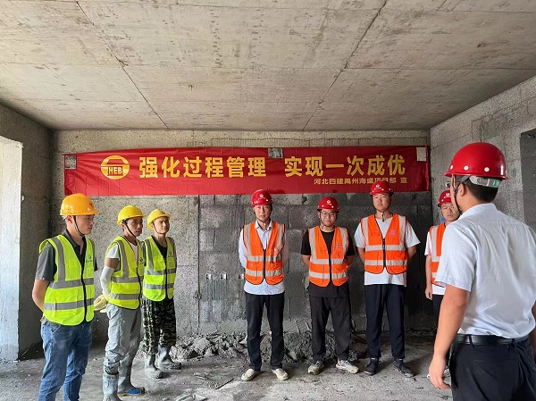 “為了強(qiáng)化全員質(zhì)量意識(shí),弘揚(yáng)工匠精神,促進(jìn)操作技能、管理技能提升,現(xiàn)開展質(zhì)量月技能競賽……”項(xiàng)目主管師蔡昭作為總裁判作了賽前動(dòng)員,宣布了比賽內(nèi)容、規(guī)則、程序、評(píng)分標(biāo)準(zhǔn)等,今年新入職職工、部分作業(yè)工人及工長觀賽。