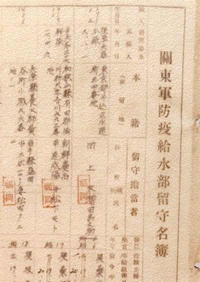 《關(guān)東軍防疫給水部留守名簿》(局部)。