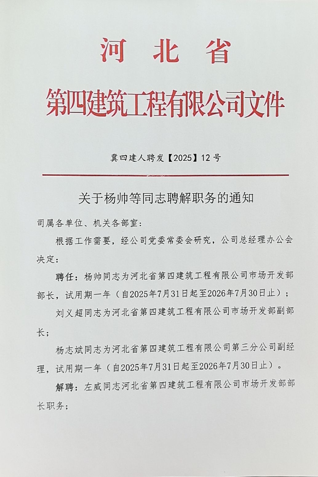 關于楊帥等同志聘解職務的通知