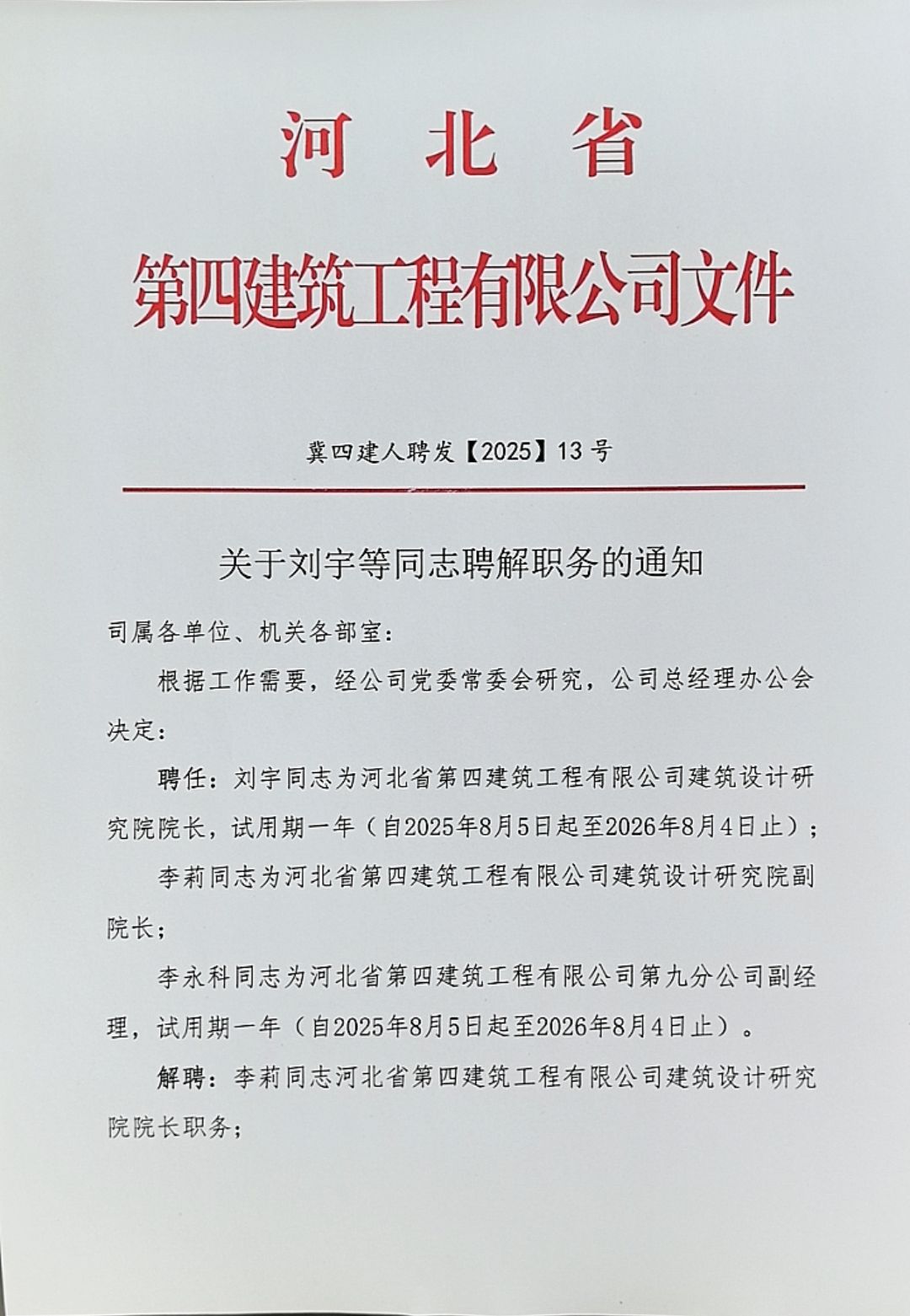 關(guān)于劉宇等同志聘解職務(wù)的通知